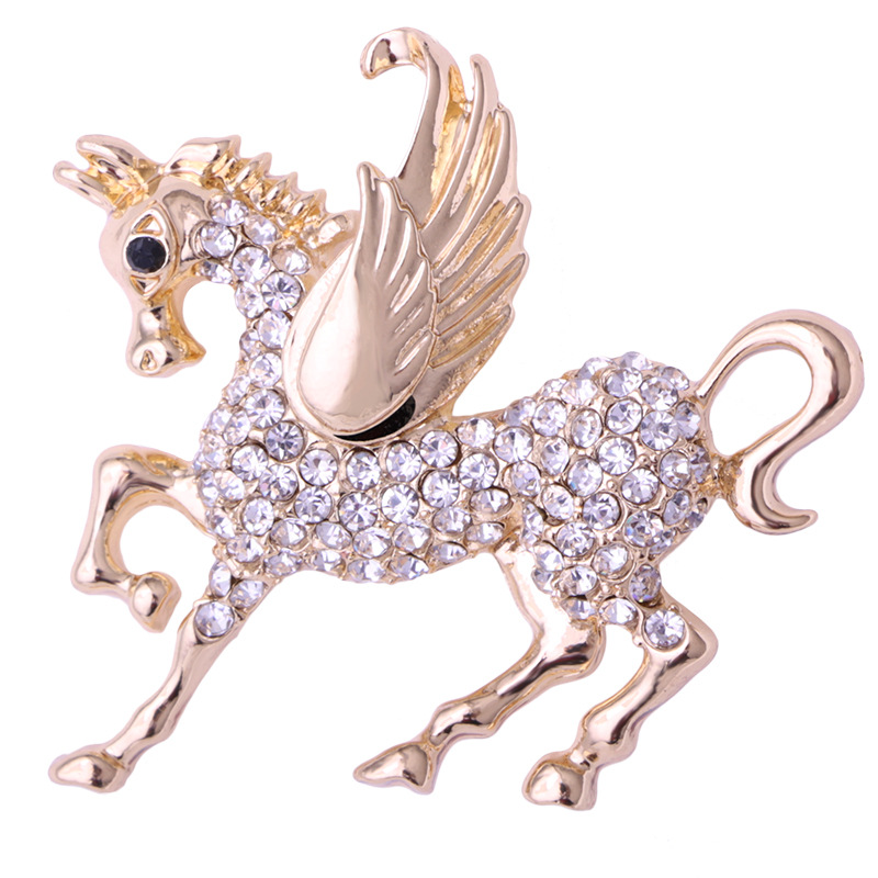 European and American fashion full diamond Pegasus brooch men domineering suit jacket pin unicorn accessories