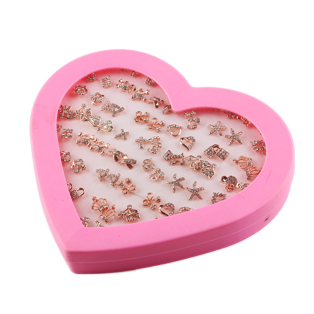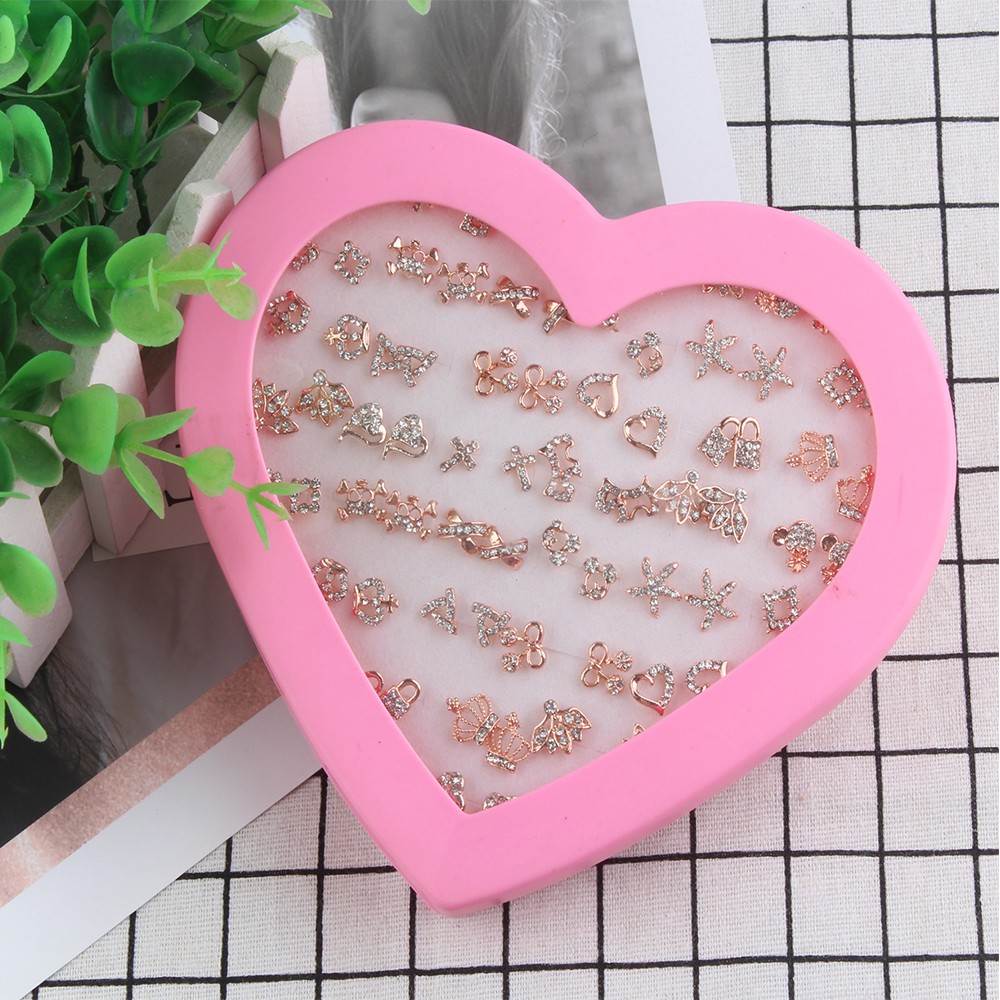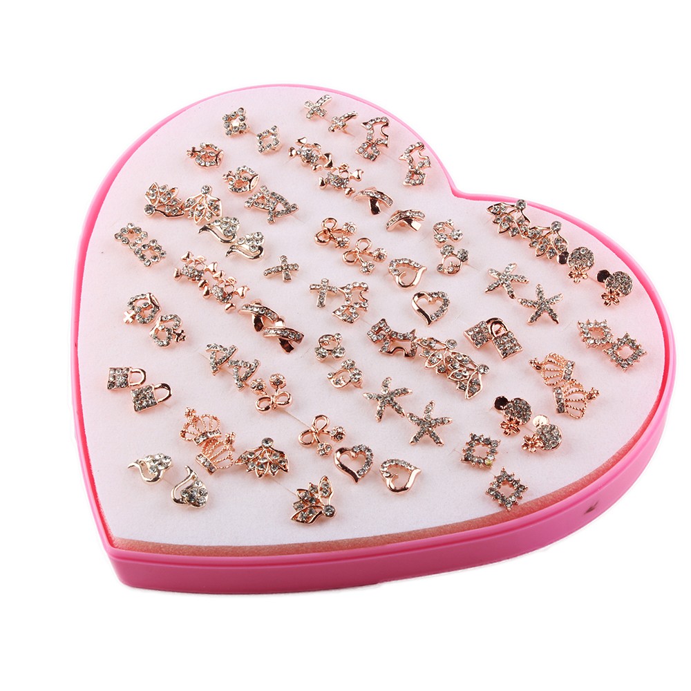 36 Pairs/Set Gold Alloy Exquisite Flash Skull Lock Crown Love Hollow Earrings
