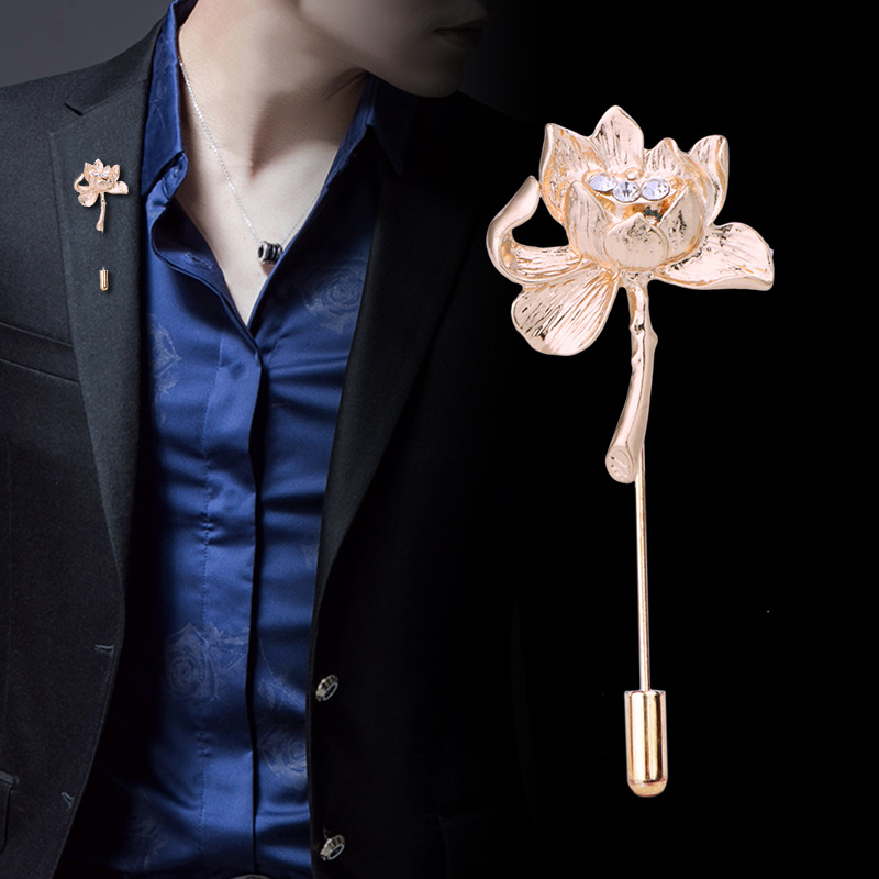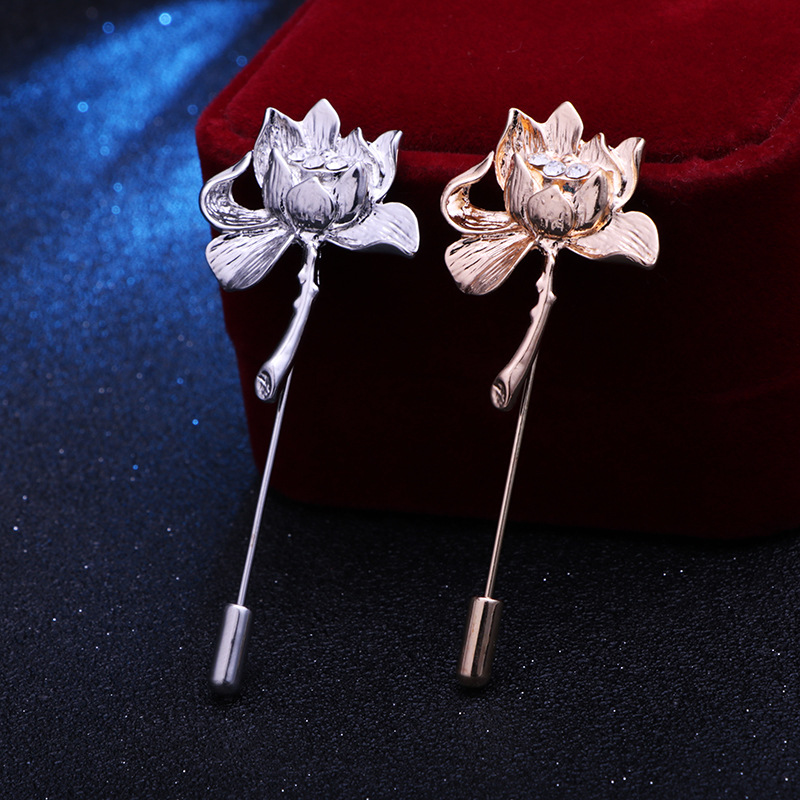 European and American classic fashion lotus brooch couples men's corsage lotus word pin suit pin factory direct sales