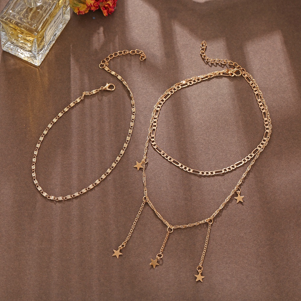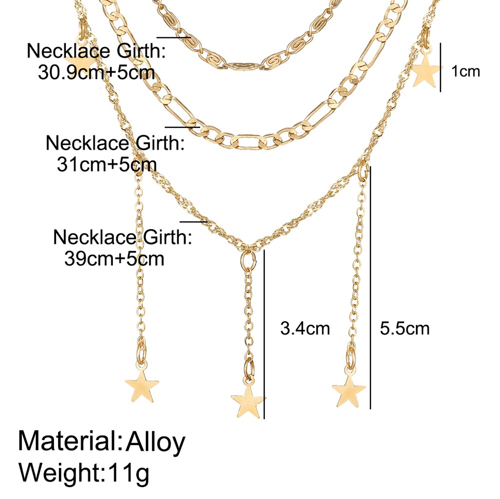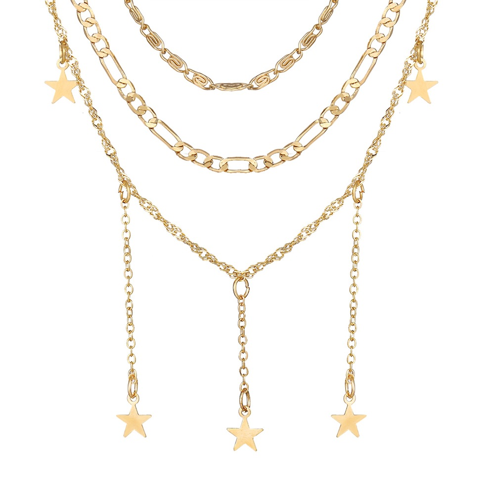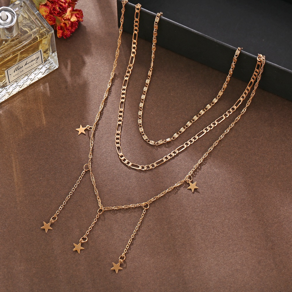 European and American cross-border multi-layer five pointed star necklace creative retro simple three-layer alloy clavicle chain