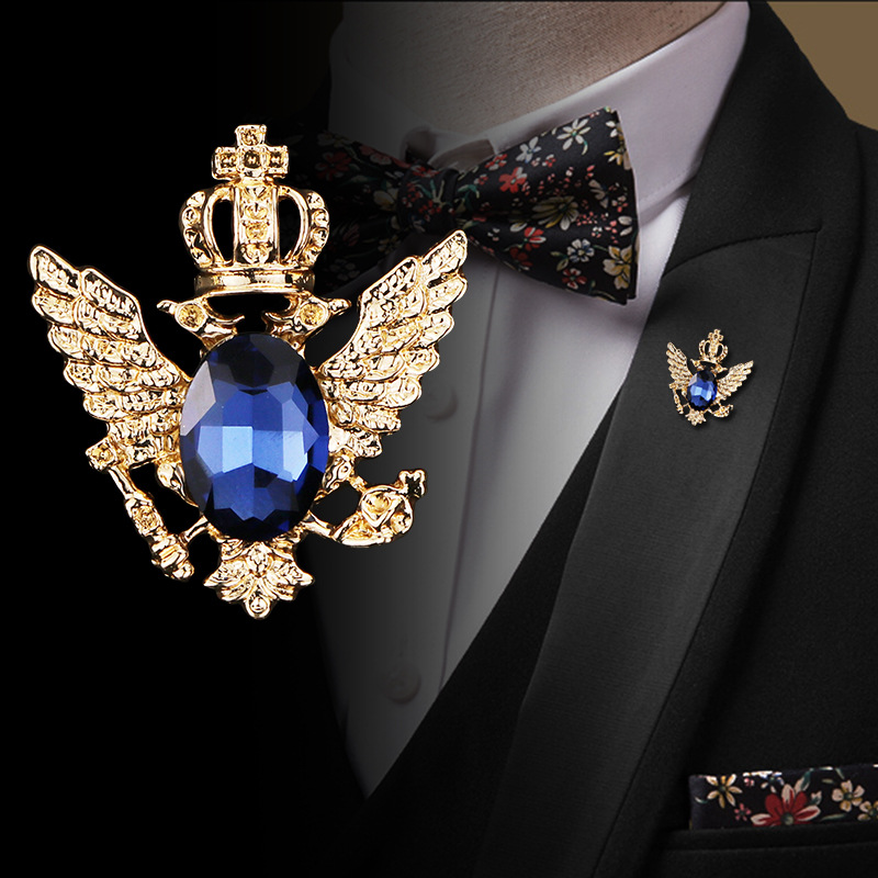 personality double-headed eagle badge men's retro suit jacket rhinestone brooch wild temperament thorn horse pin brooch