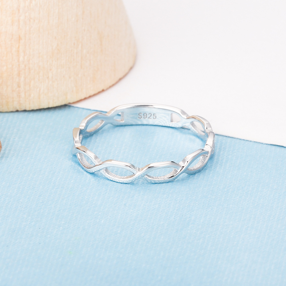 S925 silver ring female personality cross line ring finger ring wholesale simple fashion braided ring female models